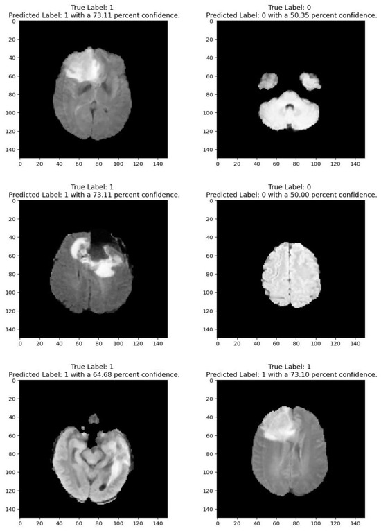 The categorization of brain MRI pictures has been the subject of several investigations. For example, S. Kumar et al. [13] achieved a remarkable maximum accuracy of 96.3% by feature extraction using a Deep CNN. In a different study [14], the authors achieved an remarkable 99% accuracy rate in tumor-grade categorization by recommending the use of artificial neural networks (ANNs) and other classifiers. Furthermore, extreme gradient boosting—a type of machine learning model—was applied in [15] to identify brain tumors with a remarkable 97% accuracy. Researchers used a support vector machine (SVM) classifier to perform several cross-validations on the feature set in a similar manner [16]. The suggested method’s accuracy was found to be 97.1% in a comparative study. In [17], scientists developed deep neural networks by combining a CNN with traditional architecture and a correlation learning mechanism (CLM). Their ground-breaking research shows that the CLM model attained an remarkable accuracy rate of almost 96%. In [18], scientists explored the complexities of brain tumor segmentation with the UNet model, achieving an accuracy of 89%, and they present a novel statistical strategy and machine learning method that yields an astounding accuracy rate of 98.9%. They also provide an interactive web application specifically designed to assist those who have survived brain cancer. A novel combination of deep learning and machine learning methods is presented in [19] to handle the categorization of hydrocephalus in brain CT pictures, with an impressive 98.5% accuracy rate. Achieving an astounding accuracy rate of 98.69%, the authors in [20] describe a revolutionary deep learning architecture designed especially for the classification of brain tumor pictures. Additionally, the AlexNet model is used in [21] to successfully diagnose brain tumors, demonstrating an astounding peak accuracy of 99.04%. Additionally, Ref. [22] explores the challenge of classifying tumor segments to aid in classifying brain tumors. To accomplish a 98.5% classification accuracy, the authors utilized a Jaya optimization algorithm (JOA) that is based on a deep autoencoder (DAE). This study [23] presents DIR-GAN, a deep learning method for brain tumor detection in MRI images. It uses advanced filtering, segmentation, and feature extraction to enhance classification accuracy, achieving up to 98.86% accuracy. Moreover, Ref. [24] achieved an amazing 99% accuracy rate in brain tumor picture classification, being the first to apply a deep residual network. A unique deep learning technique is offered in a pioneering initiative described in [25] for the identification and classification of microscopic brain tumors. Using a 3D CNN architecture, the strategy achieved a respectable accuracy of 92.67%. Moreover, Ref. [26] describes a novel hybrid deep technique that combines the transformer model with the self-attention unit to classify brain tumors with a previously unheard of 99.30% accuracy. The BrainMRNet model in [27] was painstakingly created to classify brain MRI images, reaching an accuracy milestone of 96.05%. Furthermore, Ref. [28] improves the VGG16 architecture to accomplish remarkable classification and detection accuracy rates of up to 98.69%. Moreover, Ref. [29] provides a novel convolutional neural network with a remarkable accuracy of 98.81%, and it is specifically designed for brain tumor MRI image segmentation. Finally, Ref. [30] introduces a novel model called Attention–Convolutional–LSTM that is designed especially for brain tumor classification, which has an amazing accuracy rate of 98.90%.