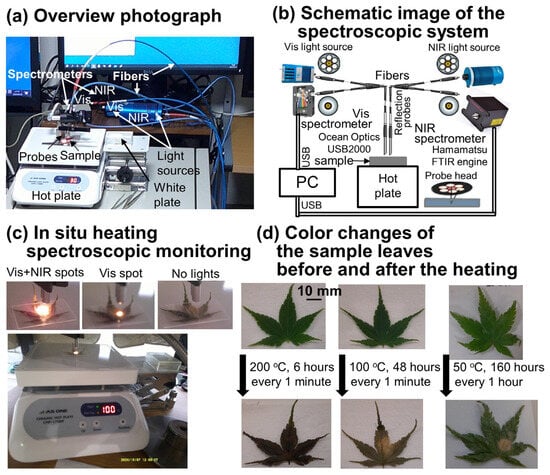 An original in situ heating visible (Vis) near-infrared (NIR) spectroscopic monitoring system was set up by the first author (Figure 2a–c).