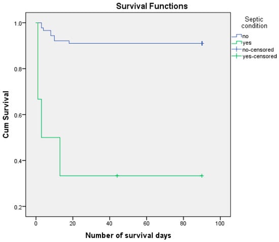 Survival Kaplan–Meier curves according to septic condition.