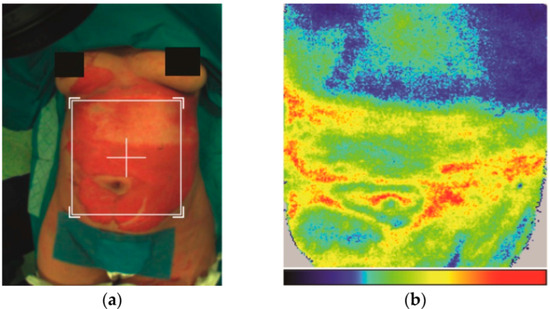 (a,b) Correlation between clinical appearance and laser Doppler imaging 4 h after applying Nexobrid® Images from authors’ collection.