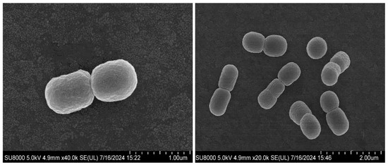 Cell morphology was observed using optical microscopy (BX53; Olympus, Tokyo, Japan) and SEM (scanning electron microscopy) (H-7650; Hitach, Tokyo, Japan) with LB agar-grown cells incubated for 48 h at 30 °C. Gram staining involved a commercial Gram-stain kit (G1060; solarbio, Beijing, China), applied in accordance with the manufacturer’s instructions. Growth under anaerobic conditions was tested using an anaerobic chamber (Forma Scientific, Marietta, OH, USA) with N2/CO2/H2 (90:5:5, v/v) atmosphere. The temperature range for growth and the optimum temperature was determined on LB agar at 4, 10, 20, 25, 30, 37, 45 and 50 °C. Tolerance to pH (3.0–11.0, increments of 1.0 pH unit, adjusted with HCl or NaOH) and NaCl (0–15%, w/v, increments of 1.0%) were evaluated in both LB broth and agar. Catalase activity was assessed by observing bubble formation in 3% (v/v) hydrogen peroxide (H2O2) solution. Oxidase activity and other biochemical characteristics were determined using API 20NE, API ZYM strips, and VITEK® 2 GN cards (bioMérieux, Marcy-l’Étoile, France), according to the manufacturer’s instructions. Reference strains were tested in parallel under identical conditions.
