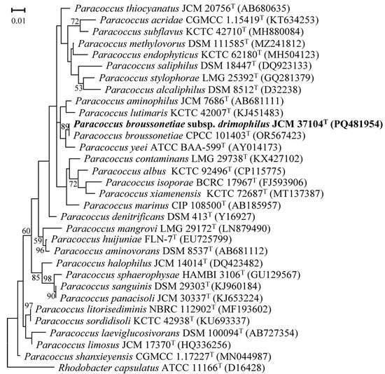 Paracoccus broussonetiae subsp. drimophilus (‘drimophilus’ is. L. gen. n. drimophilous, referring to the salt tolerance of type-strain NGMCC 1.200843T).
