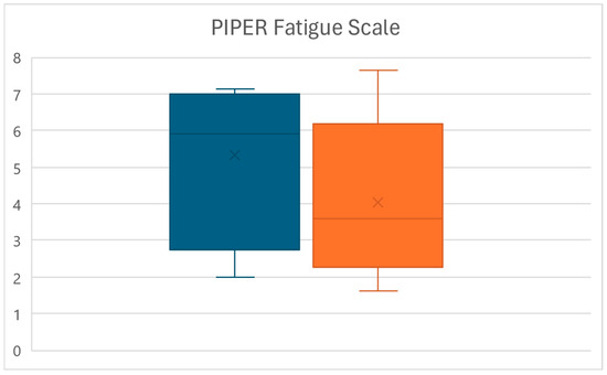 - Piper Fatigue Scale (PIPER): The revised version of the PFS consists of 22 items and four subscales: behavioral/severity (6 items), affective meaning (5 items), sensory (5 items) and cognitive/mood (6 items). These items are rated using a 0–10 numeric scale. The 22 items are used to calculate the fatigue score. Five additional items are not used to calculate subscale or total fatigue scores but are recommended to be kept on the scale as these items furnish rich, qualitative data [39] (Figures S2–S4). This scale is also useful for assessing fatigue in oncology [40].