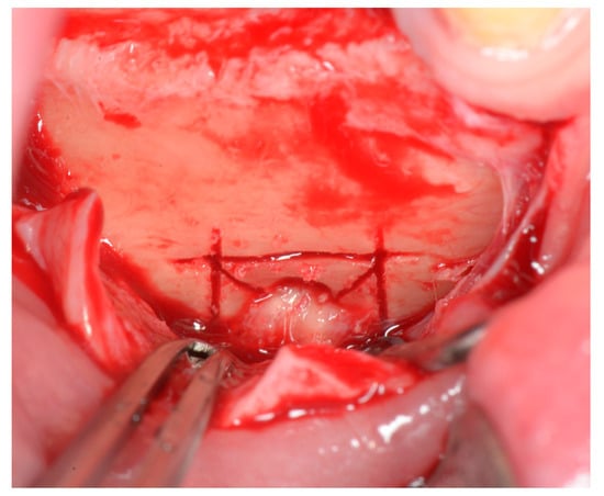 Initial osteotomy has a rectangular shape around the foramen, with at least a 5 mm distance from the bundle. The so-called “cross sections” at the edges are important, and they surpass the rectangular lines by a millimeter or two (Figure 3). This results in cross-shaped cuts on the edges of the osteotomy window and ensures that there is no trabecula remaining, which potentially could prevent the clean separation of the bone fragment and compromise the procedure.