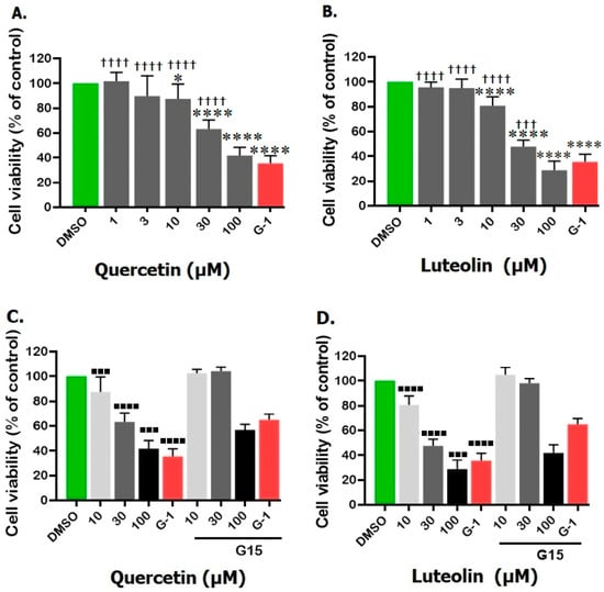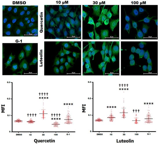 APA StyleHussein, S. A., Ababneh, N. A., Tarawneh, N., Ismail, M. A., Awidi, A., & Abdalla, S. (2025). Antitumor Effects of Quercetin and Luteolin in A375 Cutaneous Melanoma Cell Line Are Mediated by Upregulation of P-ERK, c-Myc, and the Upstream GPER. Life, 15(3), 417. https://doi.org/10.3390/life15030417