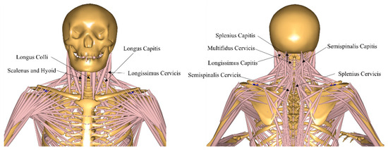 Major muscular groups of the cervical spine region in the anybody musculoskeletal model.