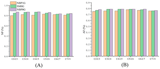 In NBP 1G, the water content of the NP for each intervertebral disc was as follows: C2C3: 80.0%, C3C4: 82.0%, C4C5: 81.0%, C5C6: 83.0%, C6C7: 82.0%, C7T1: 81.0%. The water content of the AF was as follows: C2C3: 75.0%, C3C4: 76.0%, C4C5: 76.0%, C5C6: 78.0%, C6C7: 77.0%, C7T1: 76.0% (Table S3).