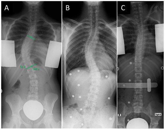 - Matussek, J.; Benditz, A.; Dingeldey, E.; Völlner, F.; Boluki, D. Operative Behandlung der Skoliose im Kindes- und Jugendalter: Differenzialindikation und Verfahrenswahl bei verschiedenen Altersgruppen und in Abhängigkeit der Ätiologie. Orthopade 2015, 44, 577–590, quiz 591-3. [Google Scholar] [CrossRef]