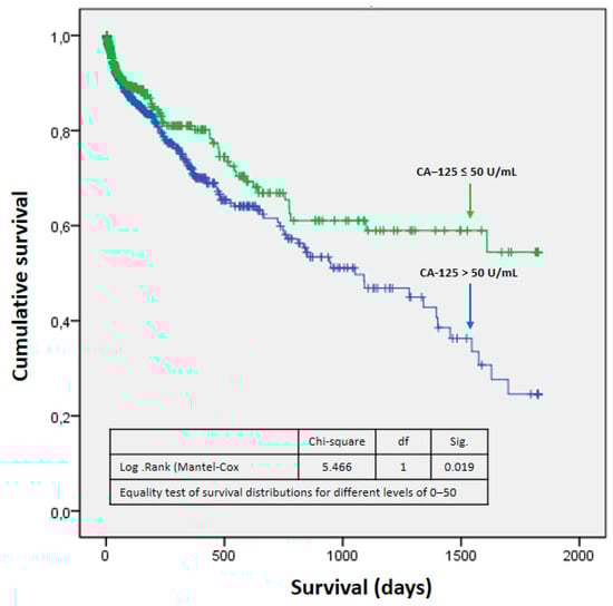 | CA-125 ≤ 50 U/mL n: 515 | CA-125 > 50 U/mL n: 882 | p | Total n: 1397 | |