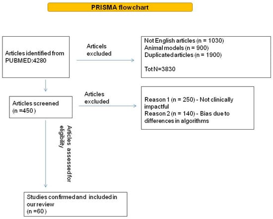 The literature search identified 4280 papers. Figure 1 shows the process of evidence acquisition. Overall, 45 studies were retrieved and fully evaluated. Based on the evidence acquired we discussed: (i) the application of AI in lung cancer screening; (ii) the role of AI in lung cancer imaging and screening; and (iii) biomarker-based screening.