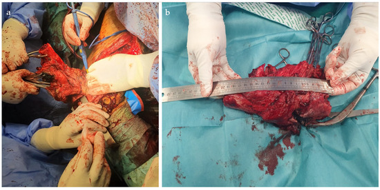 Radical debridement with the removal of all infected or non-viable bone (a); Resection Specimen (b).