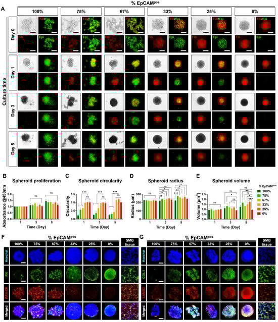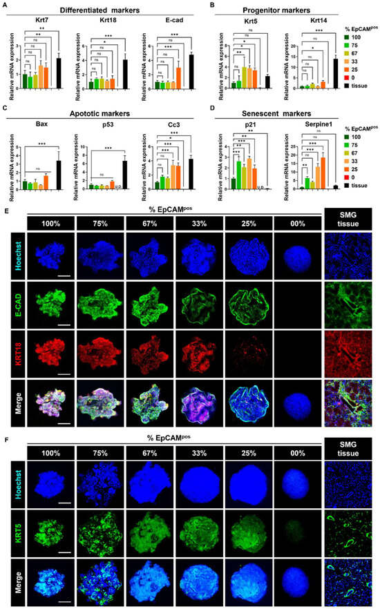 3.2. Optimal Progenitor Marker Expression in Spheroids with 67–75% mSMG-Derived Epithelial Cells