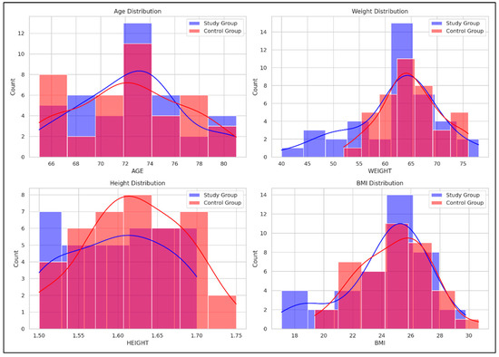 The baseline characteristics of the study participants, providing an overview of their demographic, anthropometric, and clinical data, are summarized in Table 3. A detailed analysis of each category is provided below to highlight any initial differences between the study and control groups.