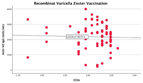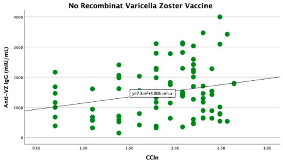 Significant linear relationship between anti-VZ IgG titer and CCIn in non-vaccinated patients.