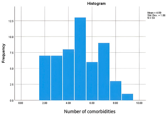 Multimorbidity is highly prevalent in HF, complicating management and contributing to worse clinical outcomes. In our study, patients with AHF had between two and nine comorbidities, highlighting the complex clinical profile of this population (Figure 2). Furthermore, our analysis did not reveal a statistically significant correlation between the number of comorbidities and ET-1 levels (R = 0.034, p = 0.819), suggesting that ET-1 concentrations are not substantially influenced by the presence of multiple comorbid conditions in studied population.