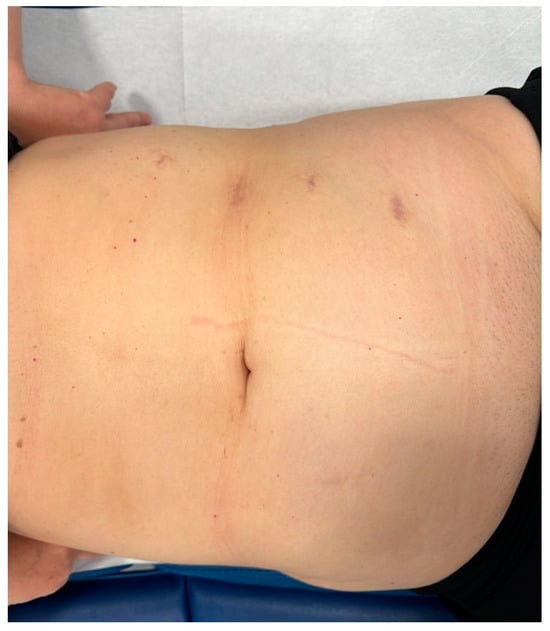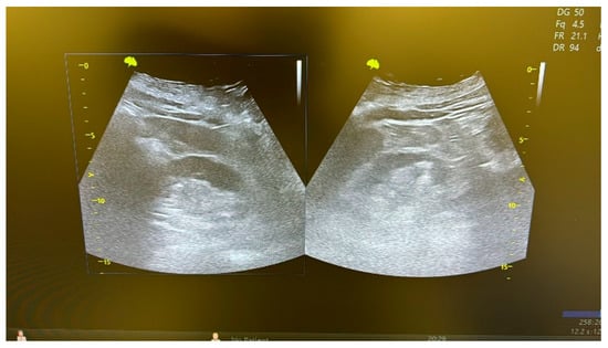 Table 1 summarizes the demographic and preoperative clinical characteristics of the patients. The minimally invasive approach was technically feasible in all patients, without needing conversion. The mean length of the ureteral stricture was 19 mm (range: 5–40 mm), calculated using the CT scan. Intraoperative and postoperative data are presented in Table 2. The median operating room time was 105 min, and the median hospital stay was 4 days. The median catheterization time and hospital stay were similar in all patients, and no significant preoperative complications occurred. The double-J stent was removed at 6 months after surgery, after an endoscopic evaluation of the procedure (Figure 10). A CT scan or an abdominal ultrasound (Figure 11) was performed 6 months later to confirm the absence of stricture recurrence and normal ipsilateral renal function. All patients remained symptom-free during the 38-month clinical follow-up.