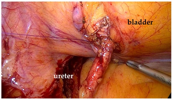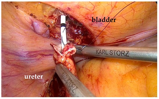 - De Cicco, C.; Ret Davalos, M.L.; Van Cleynenbreugel, B.; Verguts, J.; Koninckx, P.R. Iatrogenic ureteral lesions and repair: A review for gynecologists. J. Minim. Invasive Gynecol. 2007, 14, 428–435. [Google Scholar] [CrossRef] [PubMed]