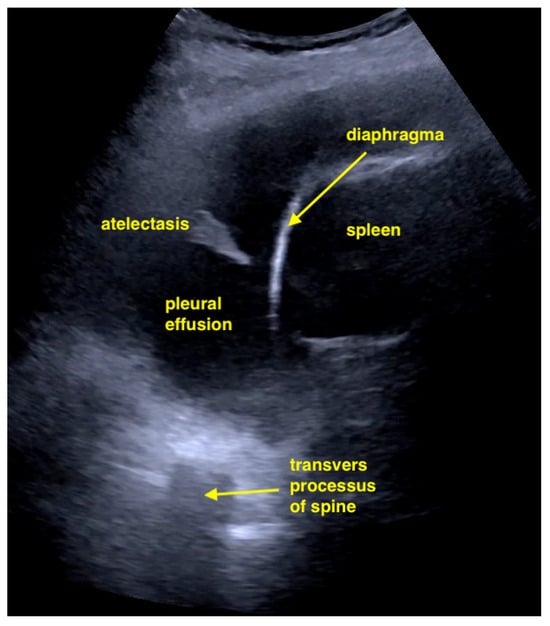 - Dickman, E.; Terentiev, V.; Likourezos, A.; Derman, A.; Haines, L. Extension of the Thoracic Spine Sign: A New Sonographic Marker of Pleural Effusion. J. Ultrasound Med. 2015, 34, 1555–1561. [Google Scholar] [CrossRef]