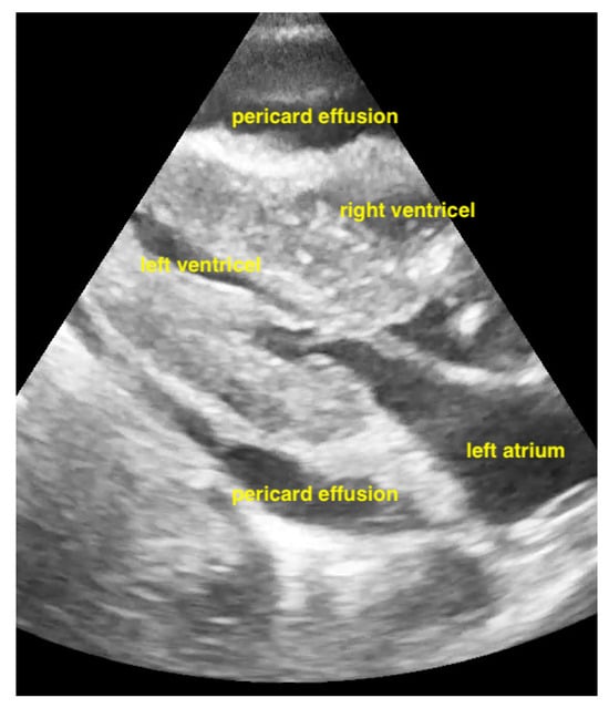 In this list, which is based on the ACLS Guidelines (advanced cardiac life support), distributive shock is assigned to hypovolemia. Distributive shock is related primarily to sepsis or anaphylaxis. However, ultrasound does not provide any clear signs that prove distributive shock, but rather excludes other problems, which, together with the patient’s medical history and clinical findings, can result in a suspected diagnosis []. The five H’s and T’s, which can be detected by ultrasound, are also addressed in the RUSH protocol, which describes the sonographic procedure for evaluating the four classic groups of shock.