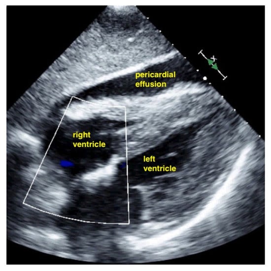 - Blanco, P.; Figueroa, L.; Menendez, M.F.; Berrueta, B. Pericardiocentesis: Ultrasound guidance is essential. Ultrasound J. 2022, 14, 9. [Google Scholar] [CrossRef]
