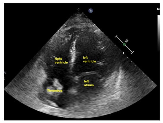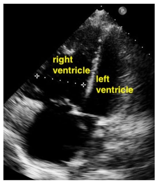 - Alerhand, S.; Sundaram, T.; Gottlieb, M. What are the echocardiographic findings of acute right ventricular strain that suggest pulmonary embolism? Anaesth. Crit. Care Pain. Med. 2021, 40, 100852. [Google Scholar] [CrossRef]