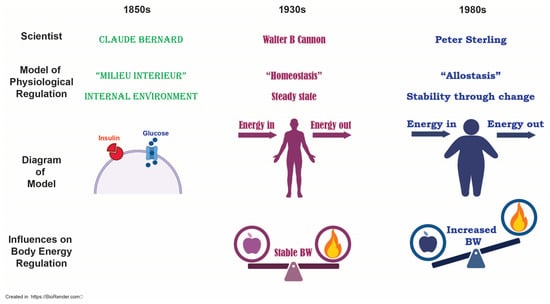 In order to grasp the complexity of obesity, it is important to understand its ideological origins. In general, obesity may arise as a result of an excess of energy input and a deficiency in energy output. Energy homeostasis is the body’s way of regulating its energy intake relative to its energy output and there are many systems in place to ensure its optimal functioning. Historically, the term homeostasis derives its meaning from the French physiologist, Claude Bernard, who coined the term milieu interièur to account for the body’s “constancy of [its] internal environment… [the] equilibrium [of which] results from continuous and delicate compensation established as if the most sensitive of balances” []. This concept later evolved to become homeostasis, so named by the American physiologist Walter B. Cannon who maintained that [] disturbances to one’s physiology are “normally kept within narrow limits …wide oscillations are prevented and the internal conditions are held fairly constant”. These hypotheses set forth by Bernard and Cannon provided a framework for our current conceptualization of homeostasis but suggest that set points are predetermined in such a way as to provide relatively little flexibility in physiological systems. This, in essence, limits the responsivity of our systems to environmental influences. If it is true that our physiologies are maintained within these “narrow limits”, then incidences of obesity would exist as more of a statistical outlier. Given the status of our current obesity crisis, the idea of homeostasis is no longer relevant and must be revised to account for the alarming rise in obesity cases.
