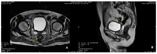 - Stillwell, T.J.; Rife, C.C.; Lieber, M.M. Bladder carcinoma presenting with rectal obstruction. Urology 1989, 34, 238–240. [Google Scholar] [CrossRef]