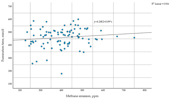 12], who reported that an increased rumination time had a positive influence, causing a reduction in methane production. In the study conducted by Castaneda et al. [