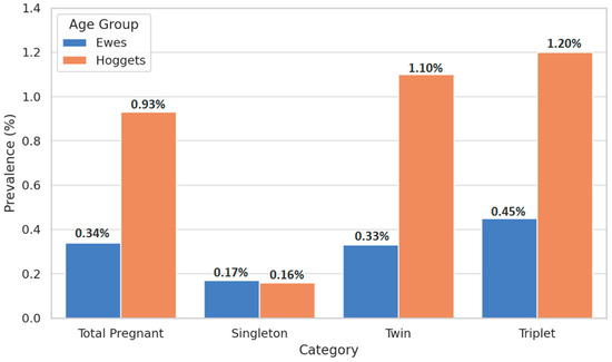 Prevalence of vaginal prolapse in ewes and hoggets across pregnancy categories.