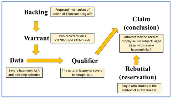 Two main ongoing studies were submitted to support claims of reducing the number of episodes of bleeding in subjects with severe haemophilia A. However, these studies were not randomised, not blinded, and did not have internal controls. In order to understand the data-generating process, the studies are presented using the Toulmin style of argumentation.