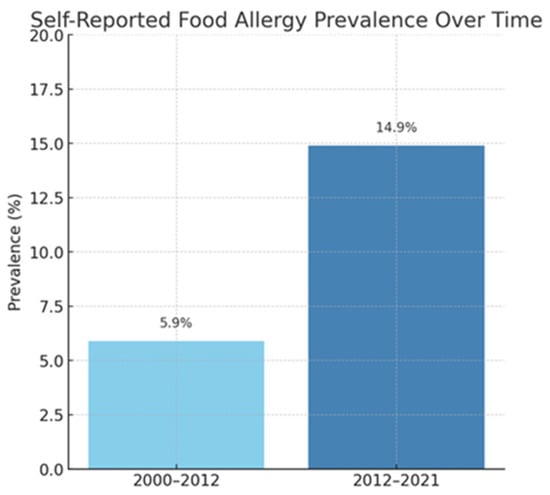 Self-reported food allergy prevalence over time [3].