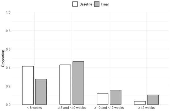 | Most recent interval, weeks | Mean (SD) | 7.7 (1.7) |