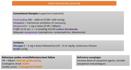 - Rotella, J.A.; Greene, S.L.; Koutsogiannis, Z.; Graudins, A.; Hung Leang, Y.; Kuan, K.; Baxter, H.; Bourke, E.; Wong, A. Treatment for beta-blocker poisoning: A systematic review. Clin. Toxical. 2020, 58, 943–983. [Google Scholar] [CrossRef] [PubMed]