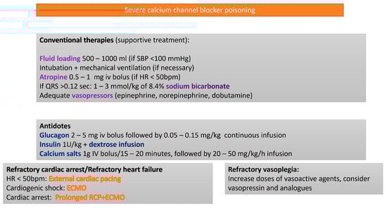 - Holzer, M.; Sterz, F.; Schoerkhuber, W.; Behringer, W.; Domanovits, H.; Weinmar, D.; Weinstabl, C.; Stimpfl, T. Successful resuscitation of a verapamil-intoxicated patient with percutaneous cardiopulmonary bypass. Crit. Care Med. 1999, 27, 2818–2823. [Google Scholar] [CrossRef] [PubMed]