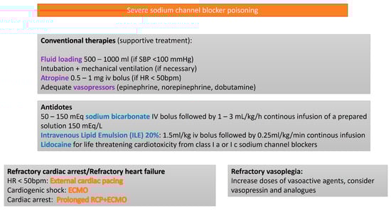 - Baud, F.J.; Megarbane, B.; Deye, N.; Leprince, P. Clinical review: Aggressive management and extracorporeal support for drug-induced cardiotoxicity. Crit. Care 2007, 11, 207. [Google Scholar] [CrossRef] [PubMed] [PubMed Central]
