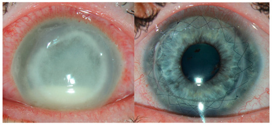 Once the AK has resolved, elective keratoplasty is useful for treating corneal scarring and restoring vision (Figure 3). Szentmáry et al. demonstrated that 94% of AK patients who received an optical keratoplasty had a clear graft during follow-up, and 40% had a visual acuity that exceeded 20/30 [91]. Optical keratoplasty has been shown to have the lowest rate of AK recurrence, so medical management should be prioritized until AK has been eradicated from the eye.