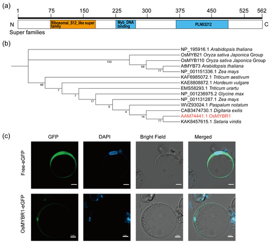 2.4. Subcellular Localization of OsMYBR1 in Rice Protoplasts