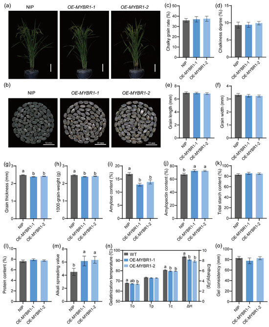 3.6. Overexpression of OsMYBR1 Enhances Rice ECQ Without Affecting Endosperm Appearance