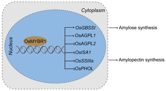 Huang, K.; Chen, L.; Jiao, G.; Ruan, Z.; Li, X.; Tang, S.; Hu, P.; Wei, X. OsMYBR1, a 1R-MYB Family Transcription Factor Regulates Starch Biosynthesis in Rice Endosperm. Life 2025, 15, 962. https://doi.org/10.3390/life15060962