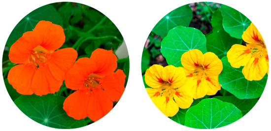 Table 2 shows the most abundant VOMs identified in Nasturtium flowers and juice, as well as the respective odor of each VOM [11,12] and the beneficial potential effects reported in the literature [17,18,19,20,21,22].