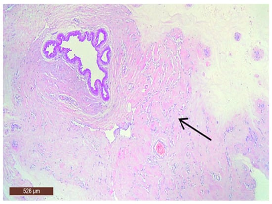 In some instances, fibrous tissue may predominate (Figure 12). Additionally, three cases in our study were associated with chronic inflammation. In the series of 13 cases, no cases with associated malignancy were observed.