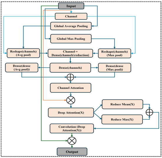 Here, σ is the sigmoid activation function, and (F) is the channel attention map. The channel attention map is then used to scale the original feature map. : = (F). F. The channel-refined feature map’s key spatial areas are then highlighted using deep attention. Deep attention is accomplished by calculating two spatial descriptors across the channel dimension, average pooling, and max pooling.