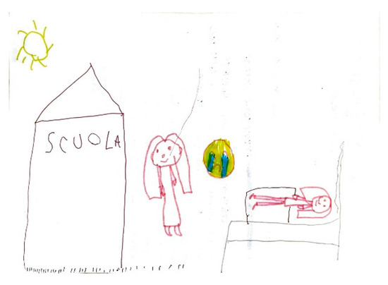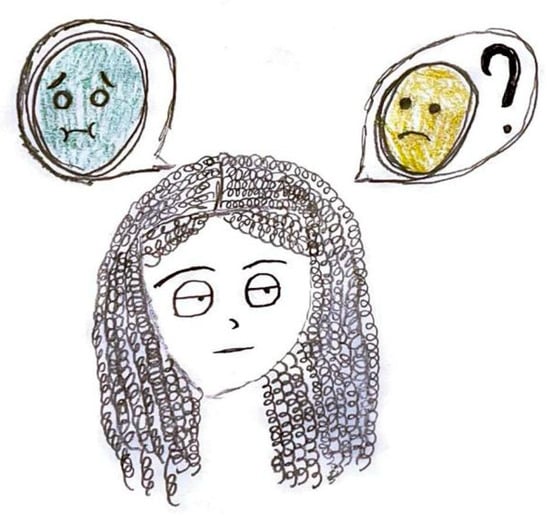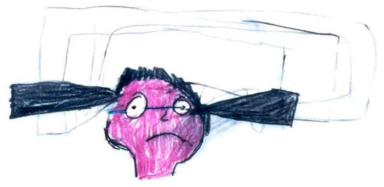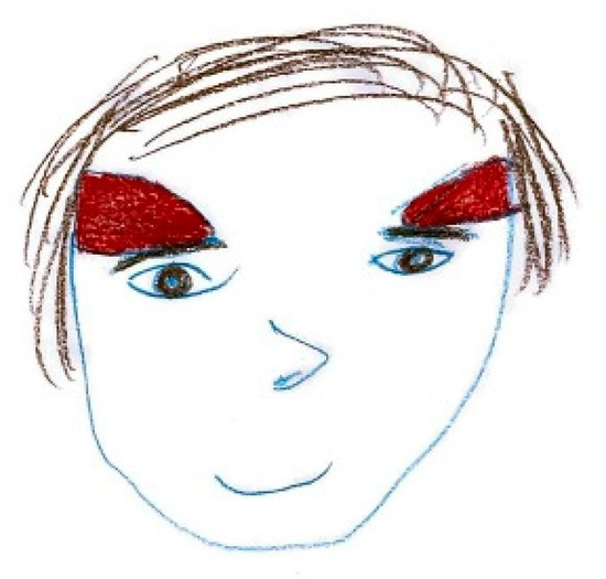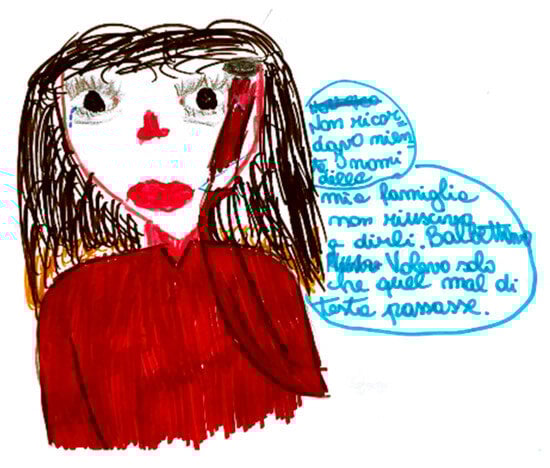 In children’s perception, pain is closely associated with physical harm or physical discomfort [23]. Drawings and verbal descriptions frequently depict pain through bodily injuries, often using colors like red and black to represent its severity. This association is particularly strong with external sources of pain, but can also be linked to internal conditions. Pain is universally regarded by children as an unpleasant experience characterized by sadness, discomfort, and distress [26]. The intensity of pain ranges from mild discomfort to extreme suffering, at times perceived as life-threatening [23]. Pain is also linked to both physical sensations (such as heat or pressure) and emotional distress (such as fear or anxiety). It is often perceived as a sign of danger or illness, leading to anxiety in children [23,25,27,28].