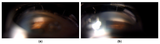 Herpes simplex virus (HSV) has been established as a cause of acute anterior uveitis, usually with unilateral presentation, with possible sectoral iris atrophy, pigment dispersion, and secondary ocular hypertension [1,2,3]. The main differential diagnoses in such cases include pigment dispersion syndrome, Fuchs heterochromic iridocyclitis, and acute bilateral or unilateral iris transillumination syndrome (BAIT/UAIT). These entities can usually be distinguished with a careful evaluation of medical history, laterality, iris atrophy patterns, as well as the presence or lack of inflammatory findings, which are especially stressed when discerning herpetic uveitis from BAIT/UAIT [4]. The latter presents similarly to herpetic uveitis, albeit almost always bilaterally, with acute onset of ocular pain, redness, and photophobia. However, it is characterized by diffuse pigment dispersion from the iris pigment epithelium (IPE), its deposition in anterior chamber structures, and the absence of keratic precipitates, anterior chamber inflammatory cells, or vitritis [4,5,6]. While the etiopathogenesis of BAIT/UAIT is still not fully understood, it has been attributed to the toxic effect of systemic or local antibiotic therapy, most commonly fluoroquinolones, on IPE [7,8,9,10,11]. Given the existence of antecedent viral infections in two-thirds of these patients, viral etiology has also been suggested to play a role [4,12].