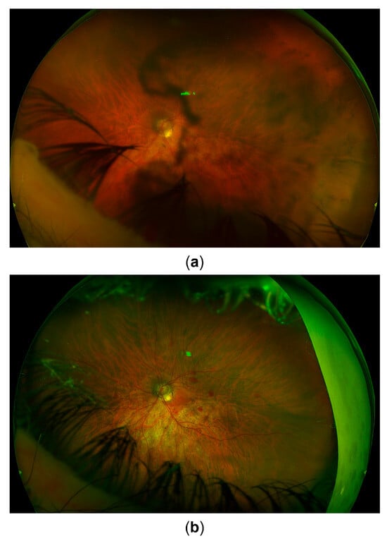 It is noteworthy that manifestations of ocular herpetic disease such as retinal necrosis or iris atrophy are believed to result from a combination of direct viral effects on multiple cell types, including endothelial cells, and immune-mediated inflammation, leading to occlusive vasculitis [25,26]. Although our patient was treated only with topical and subconjunctival steroids, and was otherwise immunocompetent, these were at first used without appropriate antiviral treatment. This may have led to uncontrolled viral replication and delayed exacerbation mimicking UAIT due to cytopathic or ischemic damage and the necrosis of the IPE. While we did not obtain intraoperative iris samples for histological analysis in our study, in the study of Gonzalez Martinez et al., the histological examination of an enucleated eye demonstrated a pronounced absence of the IPE and iris dilator muscle, with extensive necrosis and focal vascular occlusion of the iris sphincter muscle, but no evidence of active vasculitis or nuclear viral cytopathic changes typical of herpesvirus infection [15]. Additionally, the inflammatory infiltrate in the uveal tract was extremely mild and predominantly lymphocytic. The authors noted possible limitations due to sampling, and the possible modification of histological findings due to topical steroids administered to the patient. It should be emphasized that their patient presented in the late, quiet phase, several months after the initial iritis episode (n.b. also treated with topical corticosteroids and without antiviral therapy), which likely influenced the histological findings.