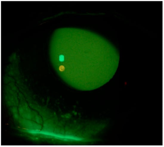 - Troisi, M.; Caruso, C.; D’Andrea, L.; Rinaldi, M.; Piscopo, R.; Troisi, S.; Costagliola, C. Compatibility of a New Ocular Surface Dye with Disposable and Bi-Weekly Soft Contact Lenses: An Experimental Study. Life 2024, 14, 653. [Google Scholar] [CrossRef]