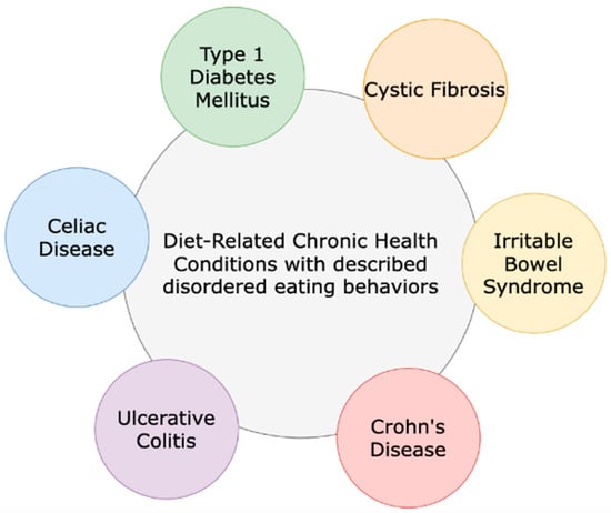 - Conviser, J.H.; Fisher, S.D.; McColley, S.A. Are children with chronic illnesses requiring dietary therapy at risk for disordered eating or eating disorders? A systematic review. Int. J. Eat. Disord. 2018, 51, 187–213. [Google Scholar] [CrossRef]