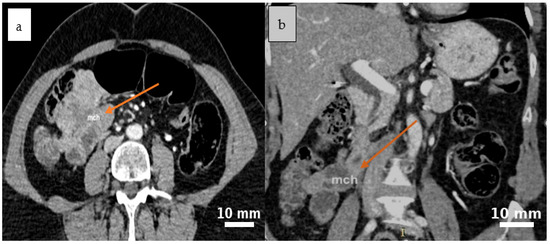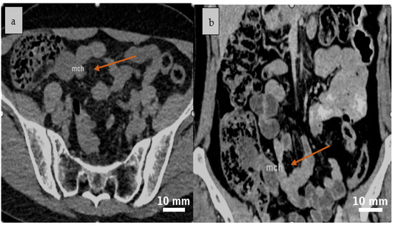 - Fundarò, S.; Medici, L.; Perrone, S.; Natalini, G. Cystic lymphangioma of the mesentery. A case of intestinal obstruction and a brief review of the literature. Minerva Chir. 1998, 53, 939–942. (In Italian) [Google Scholar] [PubMed]