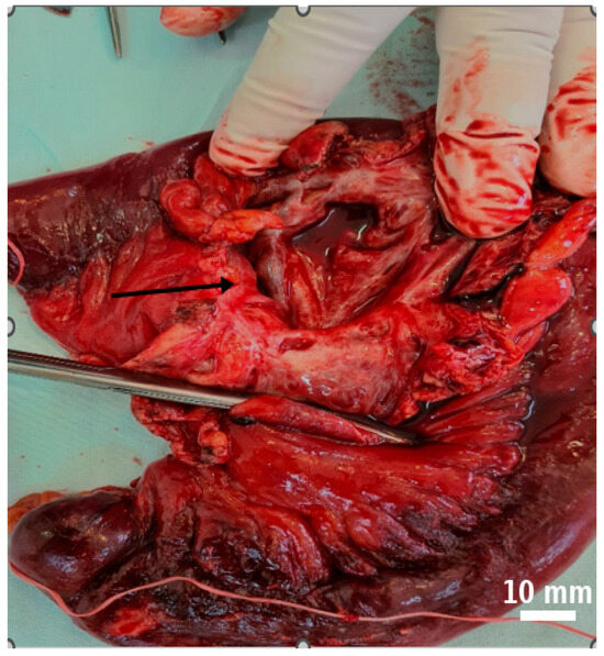 - Barbu, L.A.; Mărgăritescu, N.D.; Cercelaru, L.; Caragea, D.C.; Vîlcea, I.D.; Șurlin, V.; Mogoantă, S.Ș.; Mogoș, G.F.R.; Vasile, L.; Țenea Cojan, T.Ș. Can Thrombosed Abdominal Aortic Dissecting Aneurysm Cause Mesenteric Artery Thrombosis and Ischemic Colitis?- A Case Report and a Review of Literature. J. Clin. Med. 2025, 14, 3092. [Google Scholar] [CrossRef] [PubMed]