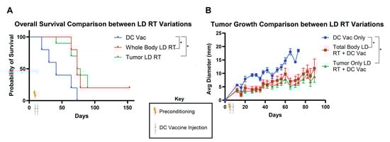 3.2. LD RT Added to DC Vaccine Significantly Improves Efficacy over DC Vaccine Alone